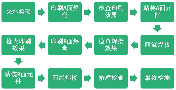 片式元器件雙面貼裝工藝流程如下: